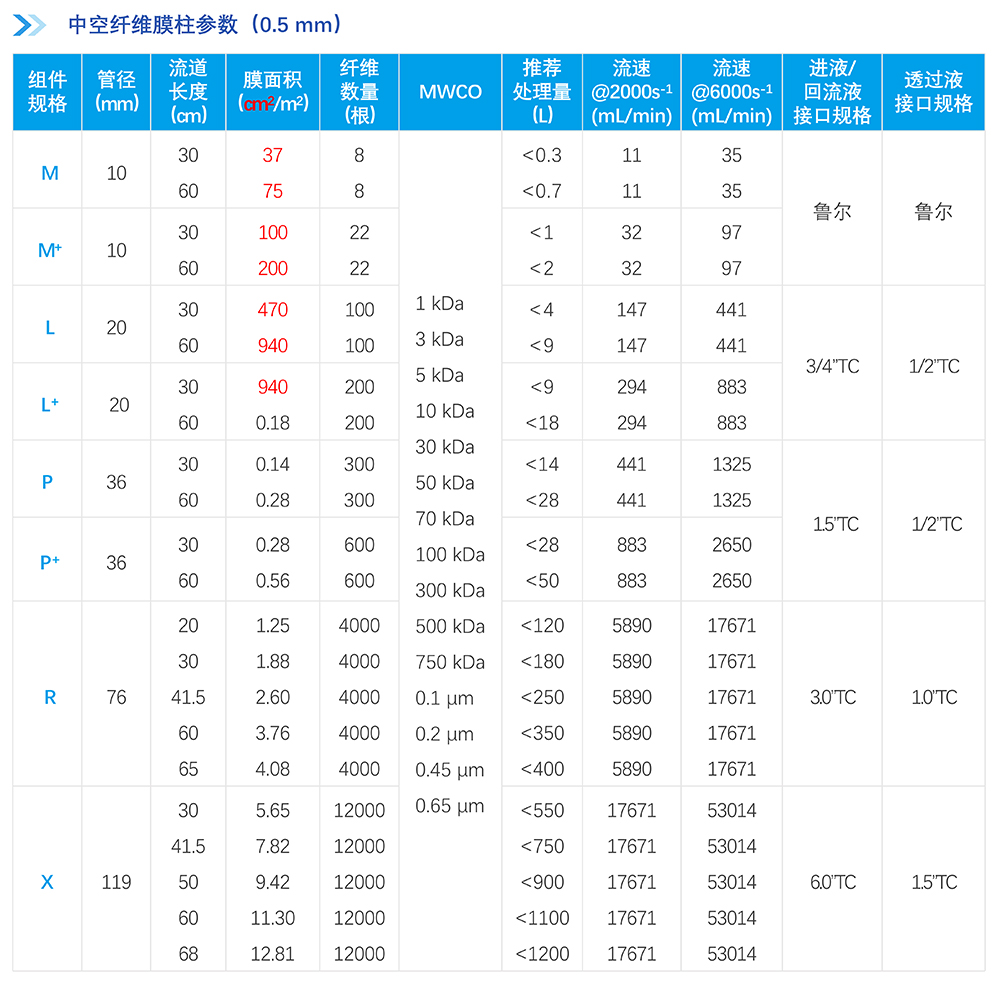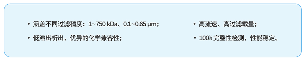 中空纖維膜絲采用改性聚醚砜(mPES)制備,抗污染性能強;非對稱梯度孔結(jié)構(gòu)及均一孔徑保證高過濾精度的同時能獲取更高通量,提高產(chǎn)品收率。中空纖維膜柱采用符合醫(yī)療級別的外殼材料,生物相容性優(yōu)異,在滅菌環(huán)境中穩(wěn)定性優(yōu)良;選用的膠黏劑粘接強度高,耐熱性、耐化學(xué)性及生物相容性優(yōu)良;同時采用優(yōu)化的注膠工藝,注膠精度高,產(chǎn)品無缺陷。